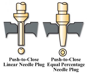 The Hi-Flow™ Series also offers needle plugs that reduce the orifice size considerably for controlling very low flows. The needle plugs are available in linear or equal percentage flow characteristics.