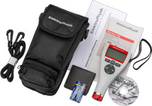 This thickness gauge facilitates non-destructive coating measurement of non-magnetic materials on ferromagnetic substrates and of insulating coatings. This configuration comes with an external, type B/E, F1.5 HD sensor offering a measuring range of 1500 _m / 60 mils.