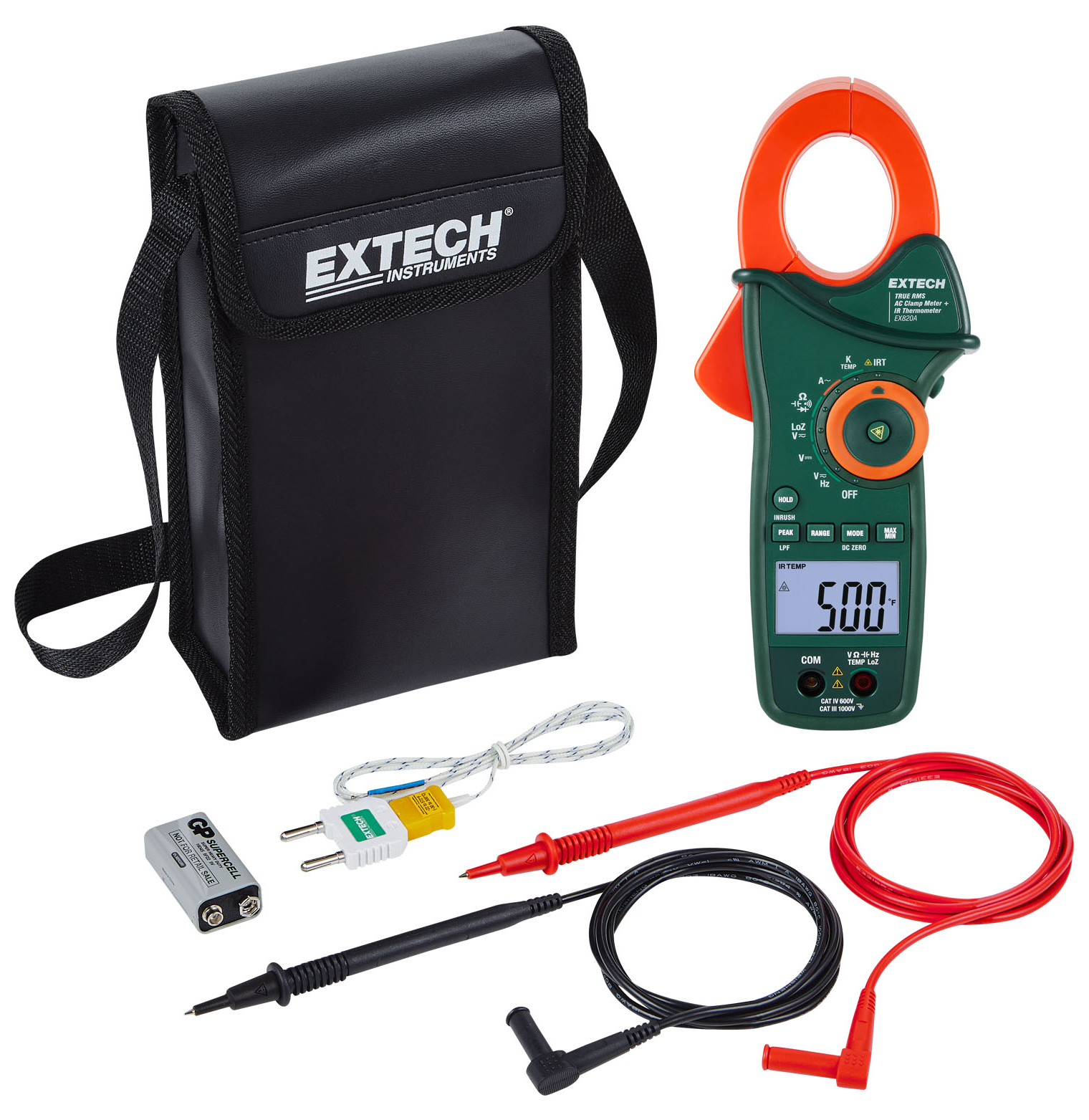 Ergonomically designed with a double-molded housing, this True RMS AC clamp meter, with a CAT IV-600 V rating, provides a better grip for one-hand operation. Additionally, this meter includes a built-in infrared thermometer and laser pointer for non-contact temperature surface measurements.