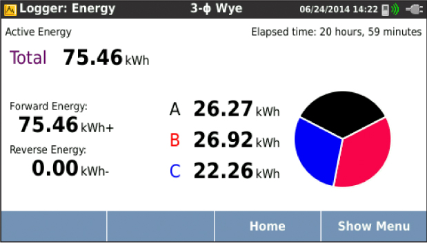 | Circuit Types | 1-φ, 1-φ IT, Split phase, 3-φ delta, 3-φ wye, 3-φ wye IT 3-φ wye balanced, 3-φ Aron/Blondel (2-element delta) 3-φ delta open leg, Currents only (load studies) |
