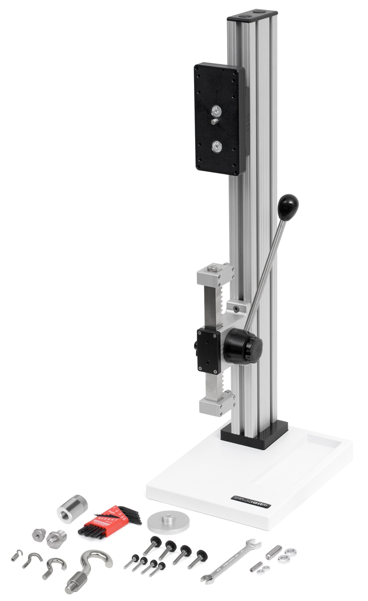 Durable enough for the factory floor yet precise enough for laboratory environments, this lever-operated test stand is a perfect solution for quick-action pull testing and compression testing of up to 750 lbF (3.75 kN) of tensile or compressive force.